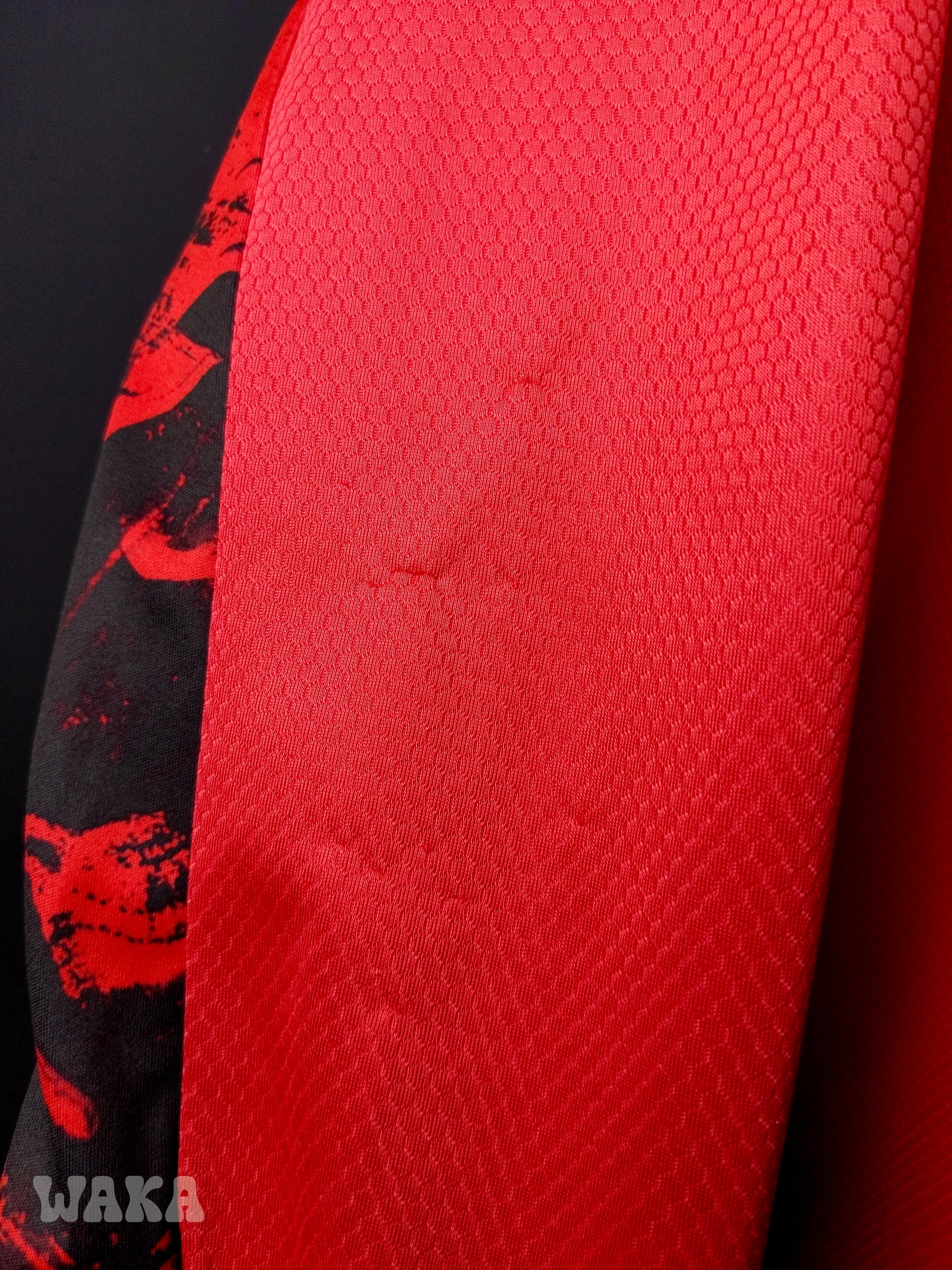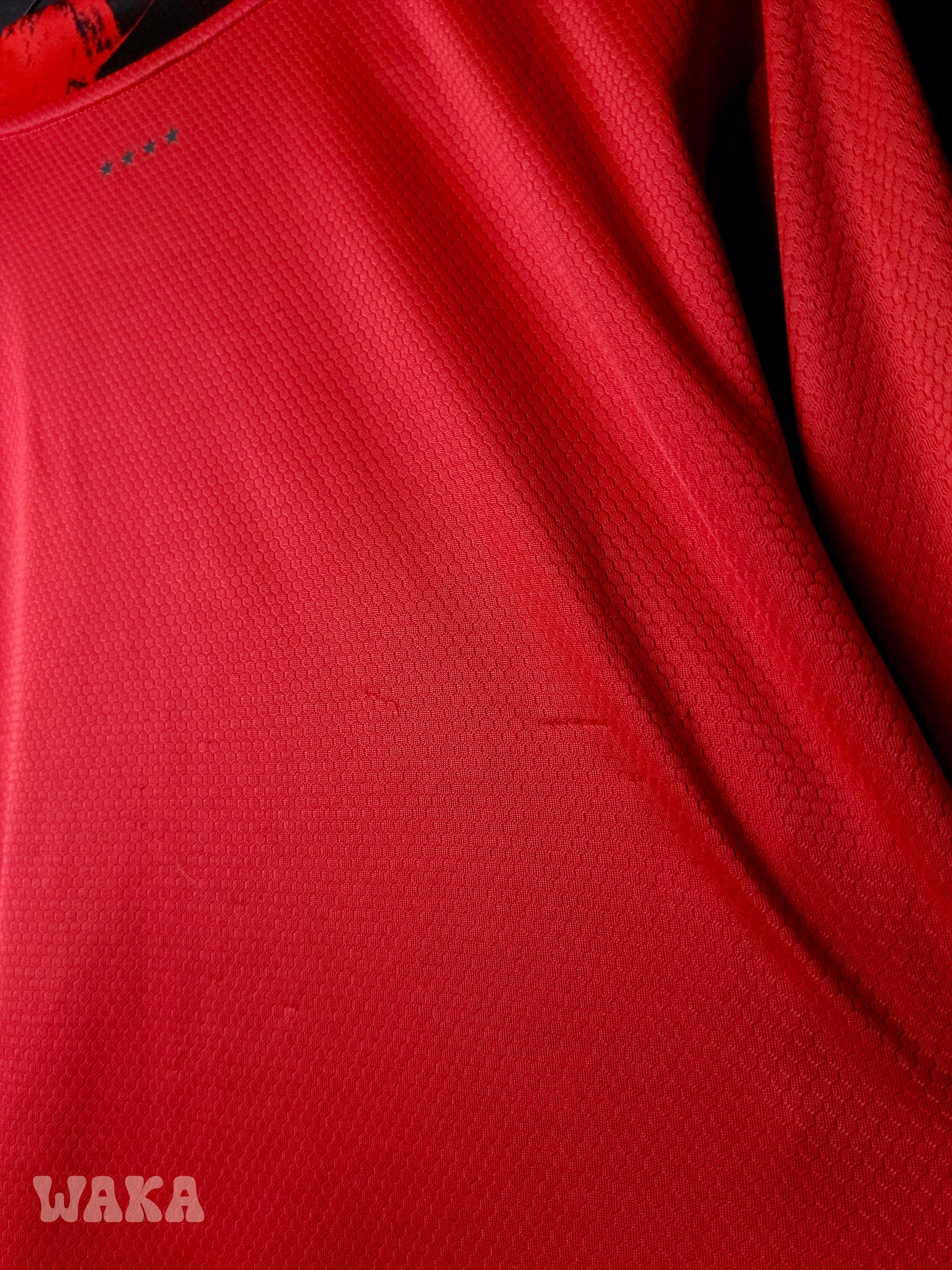État : 8/10 Plusieurs fils tirés à noter, notamment dans le dos et sur l'avant bras droit. Maillot en très bon état dans l'ensemble.