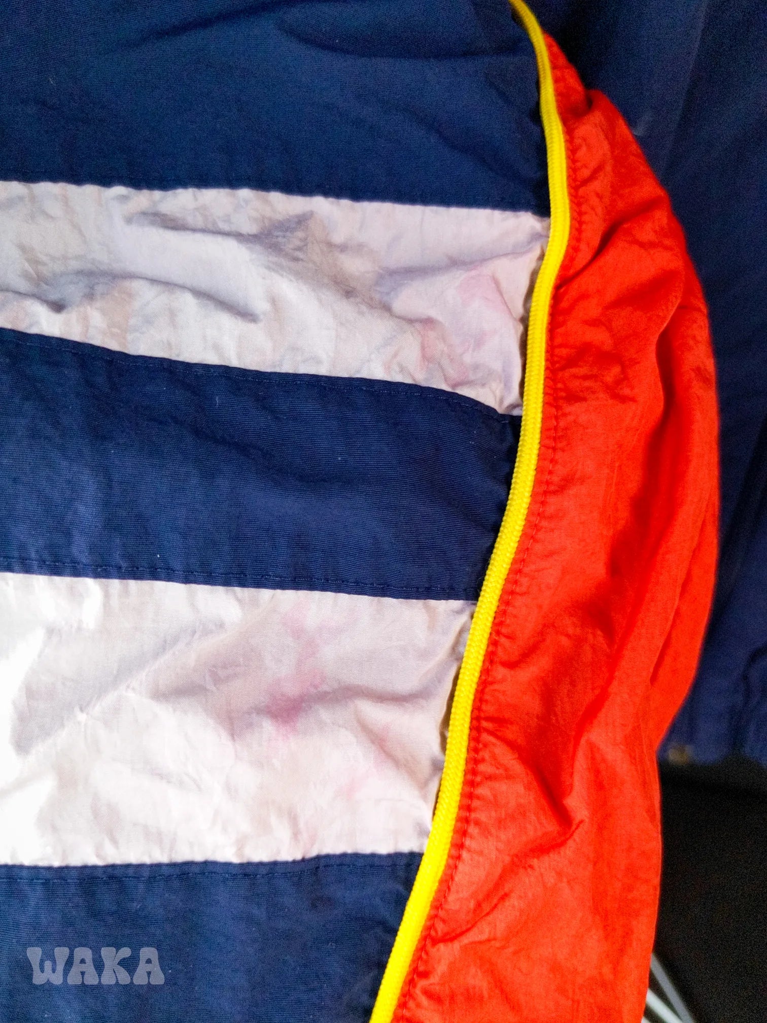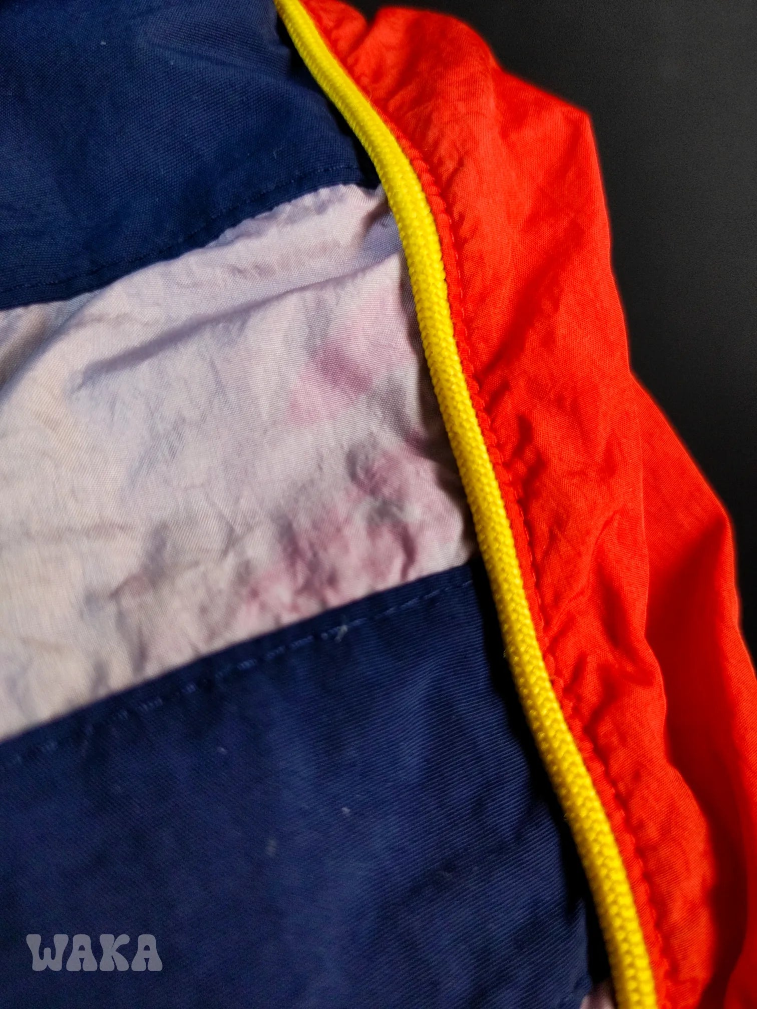 État : 6,5/10. Petite usure générale. Notons surtout un petit trou de cigarette sur l'avant et des tâches roses au niveau des manches.