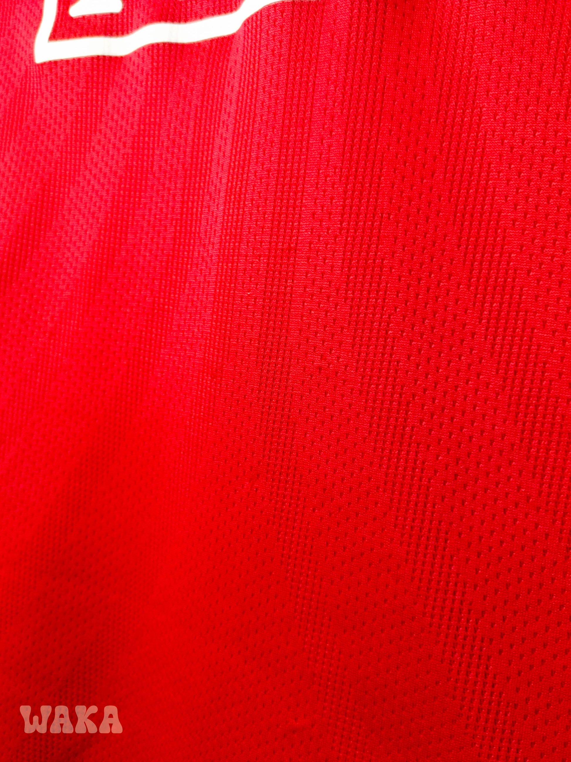 État : 8,5/10. Maillot en très bon état. Plusieurs accrocs visibles ici et là. Les bandes dans le dos sont nickels. Le flocage joueur et sponsor également. Super aspect général.