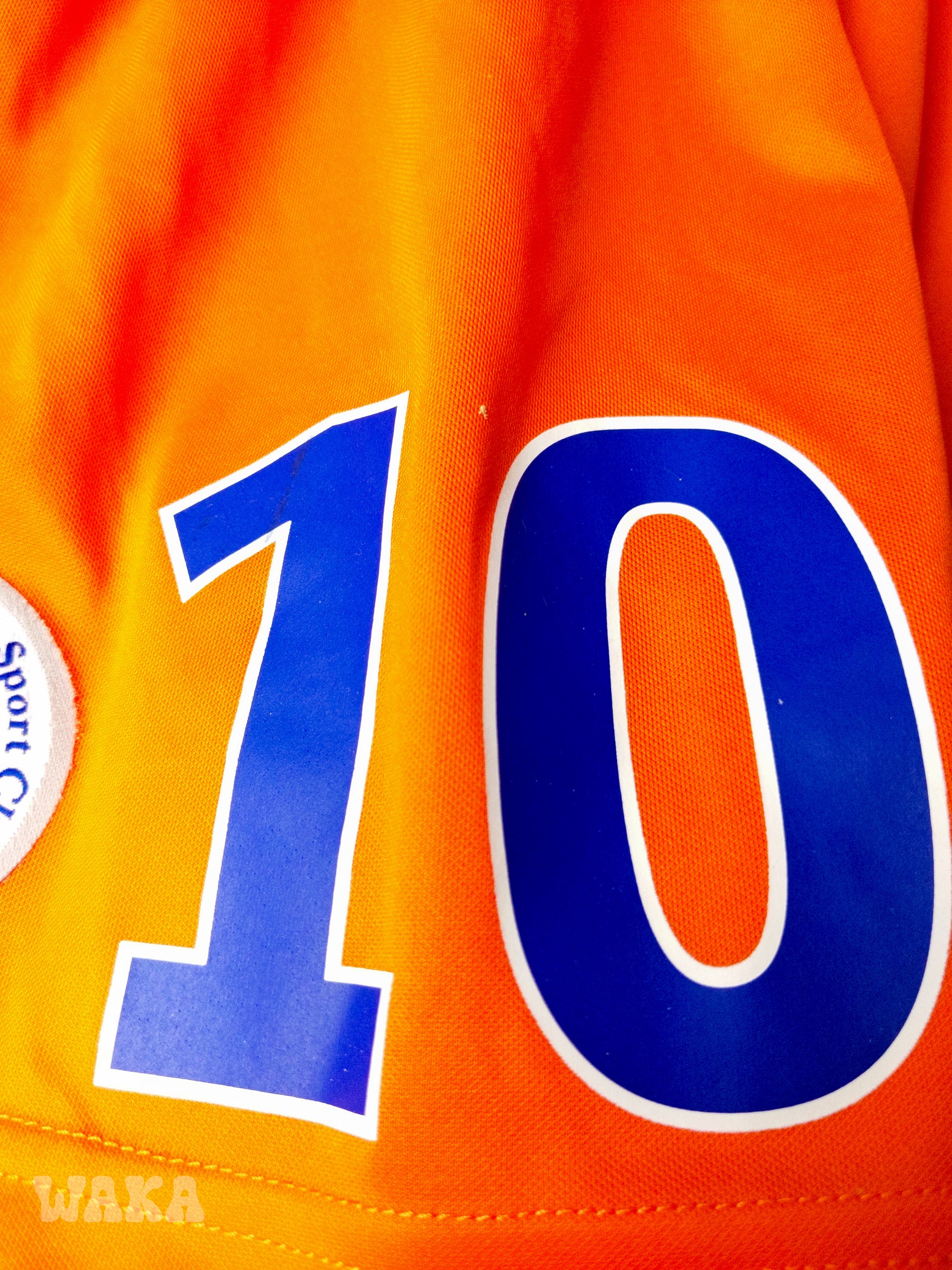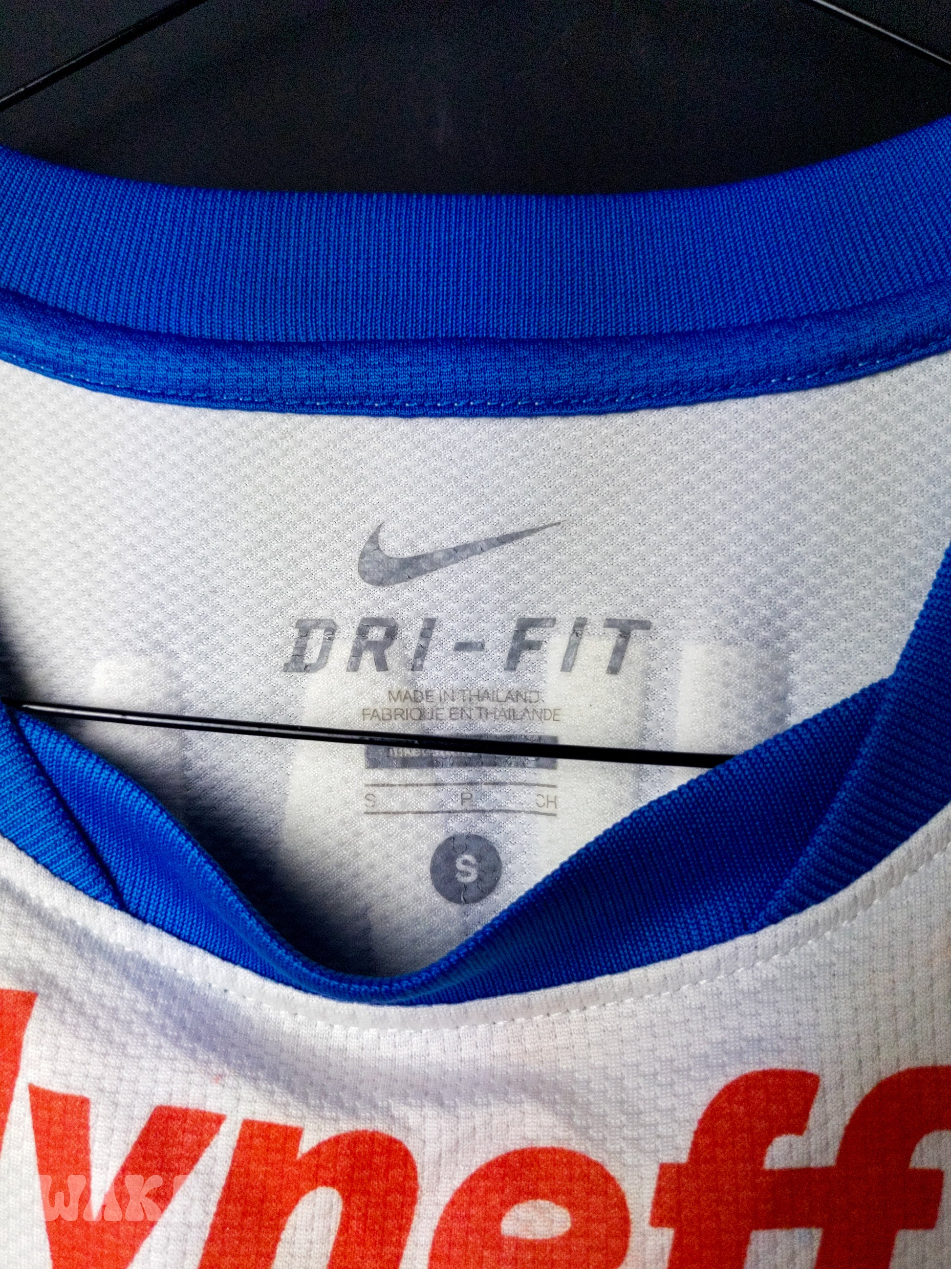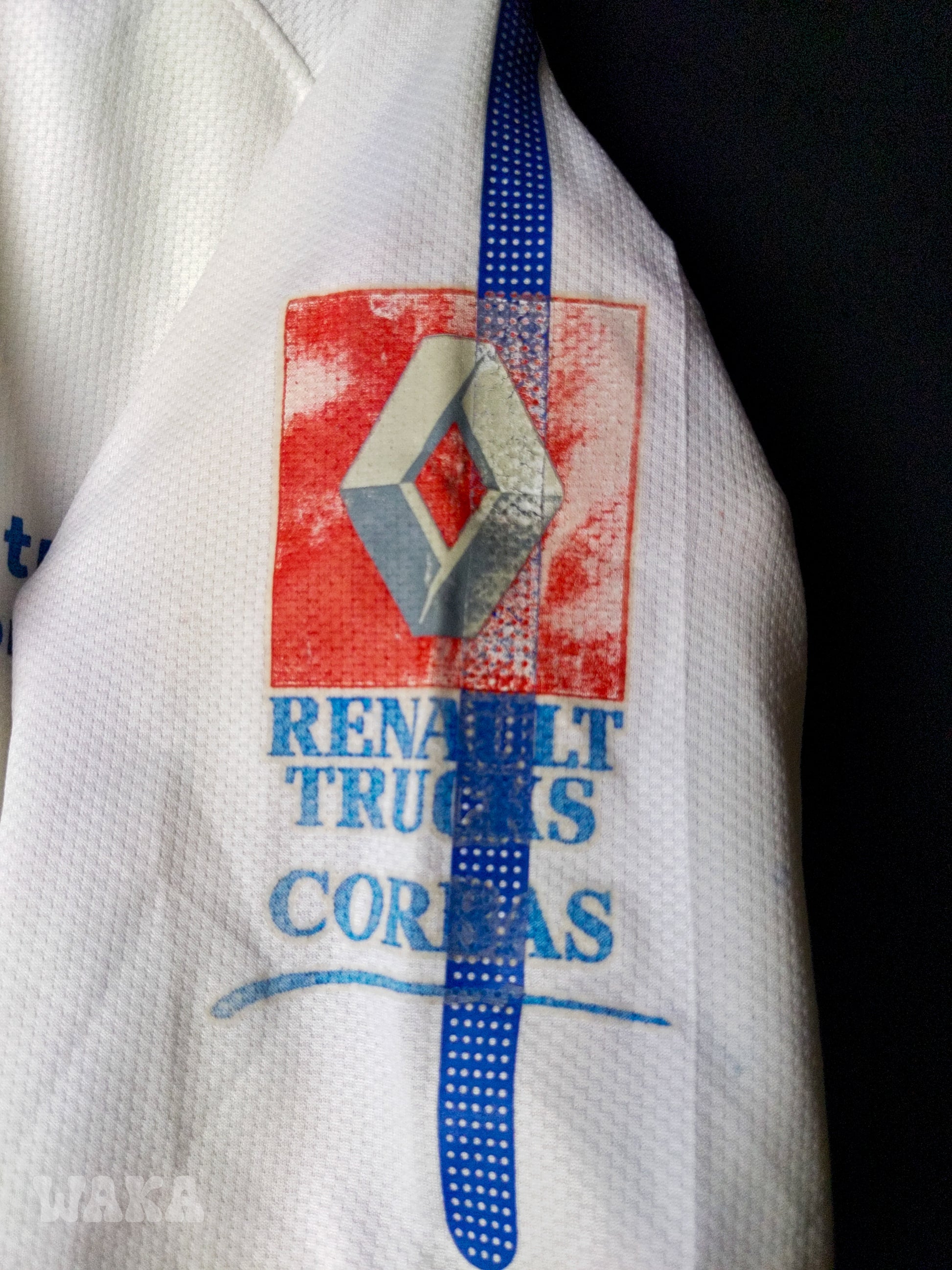 État : 7,5/10. Maillot du titre en bon état. Les sponsors sont abimés et ont légèrement déteint par endroit. Mais pas d'accroc, pas de trou, flocage joueur en excellent état.