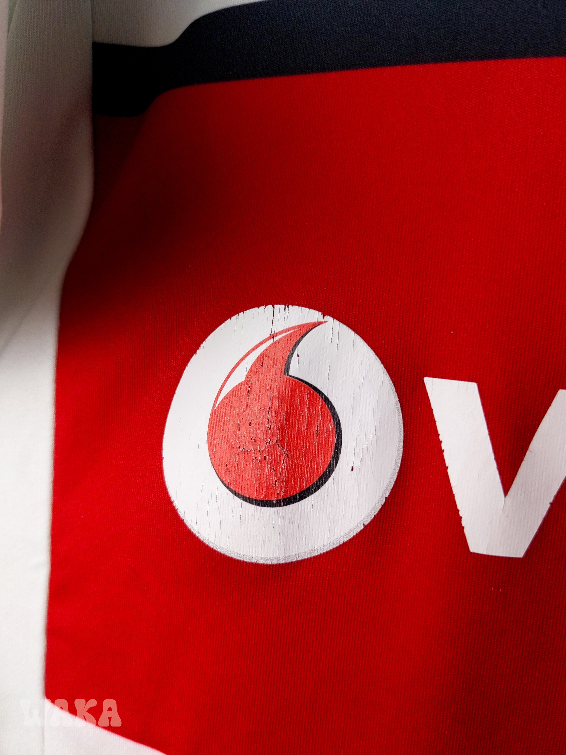 État : 8/10. Maillot en (très) bon état. Des légères traces noires dans le dos. Flocage sponsor légèrement abimé. Voir photos. Pas de trous, pas d'accrocs. Très bon aspect global.