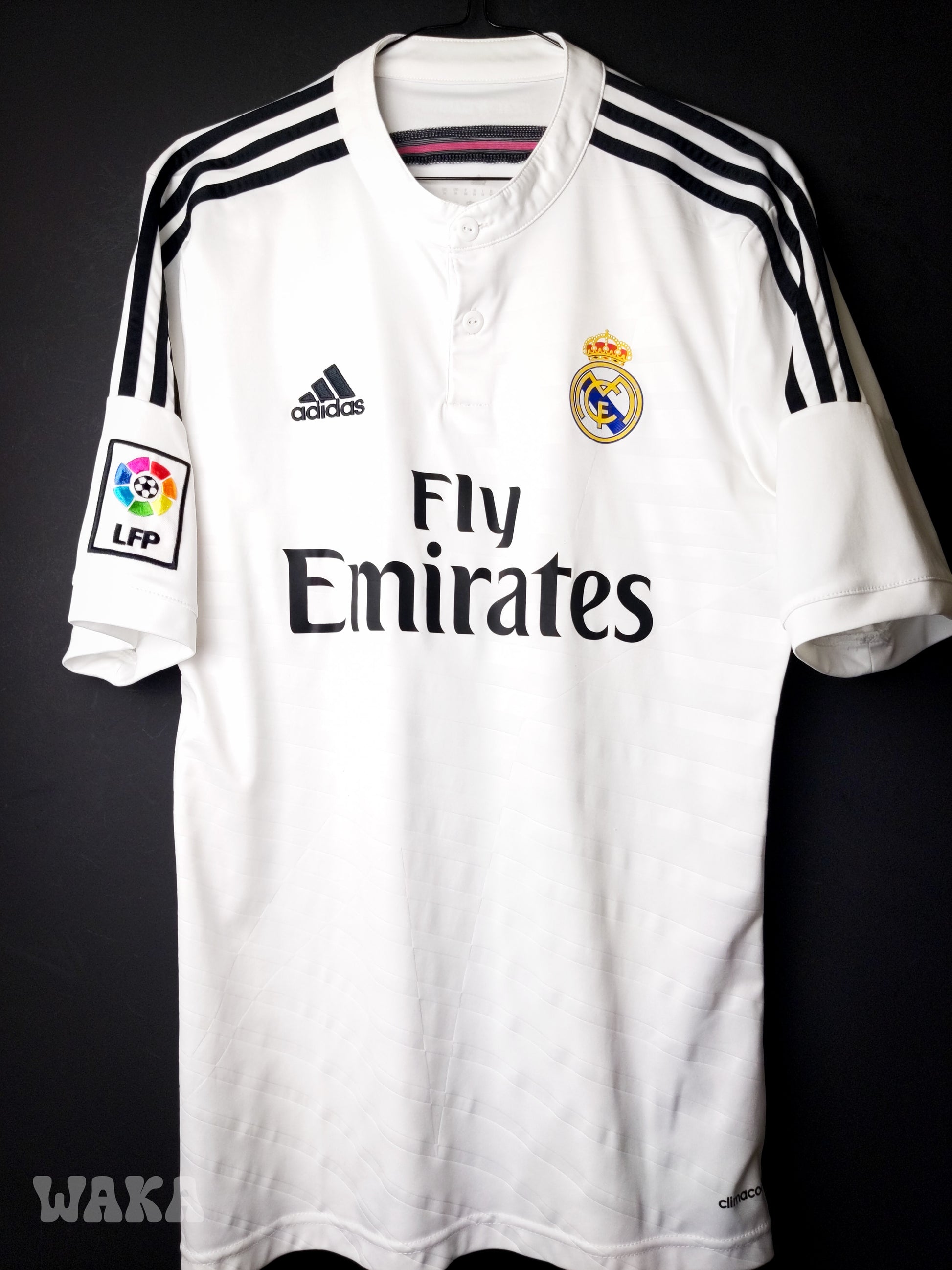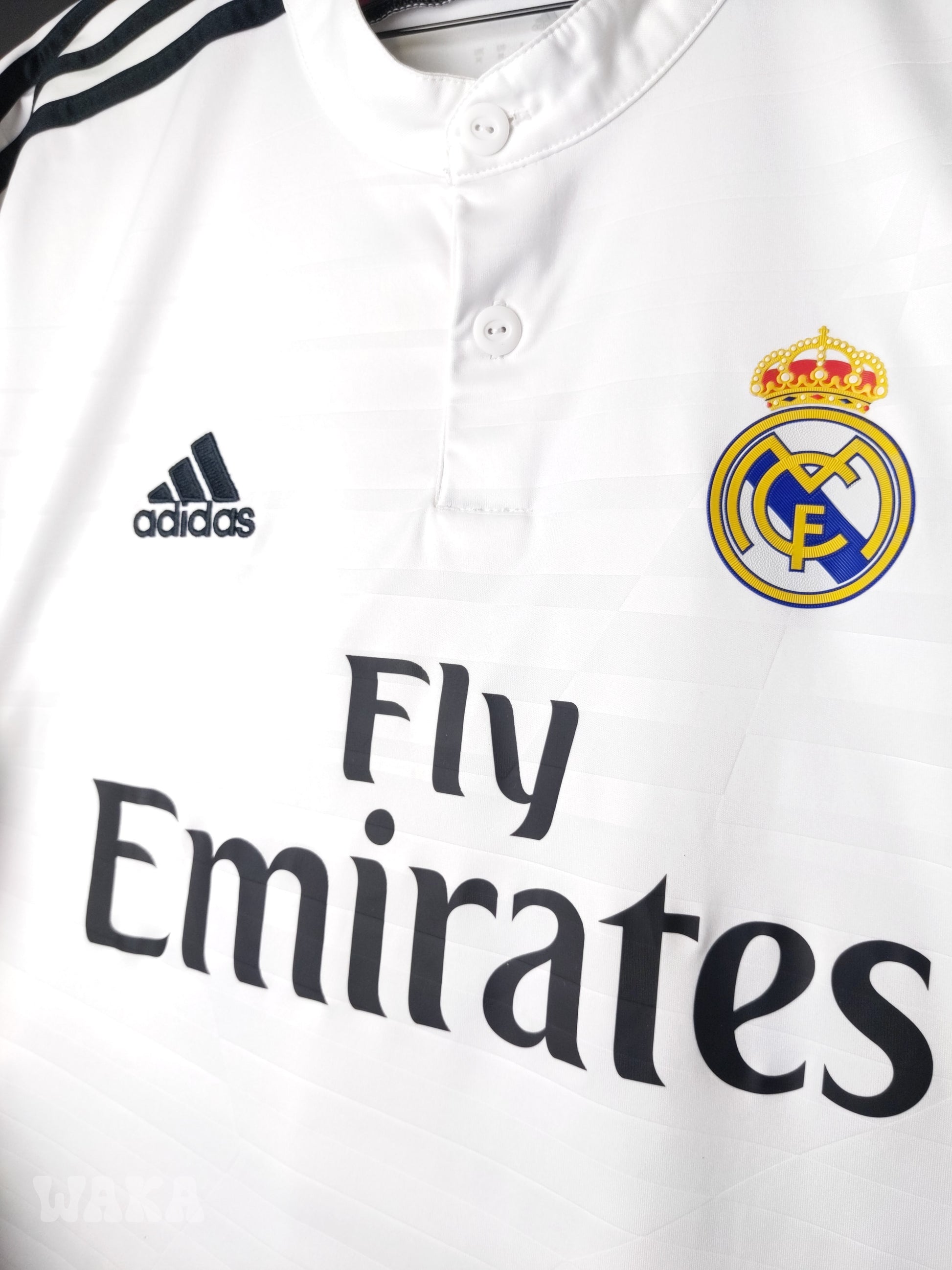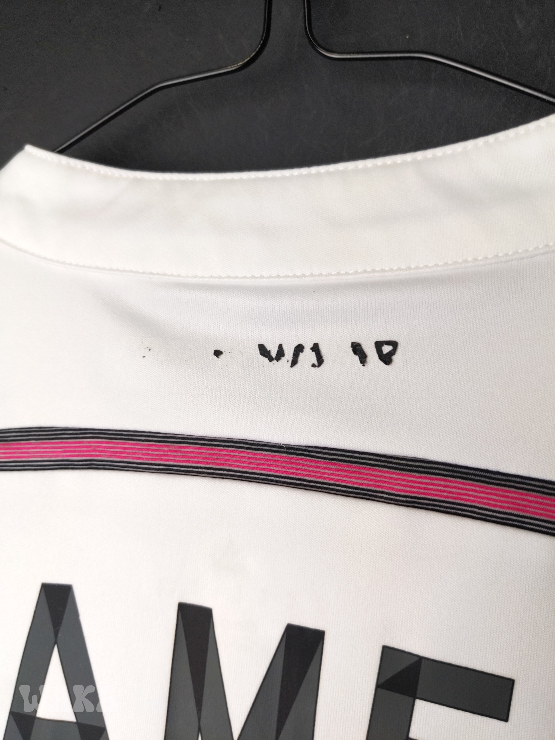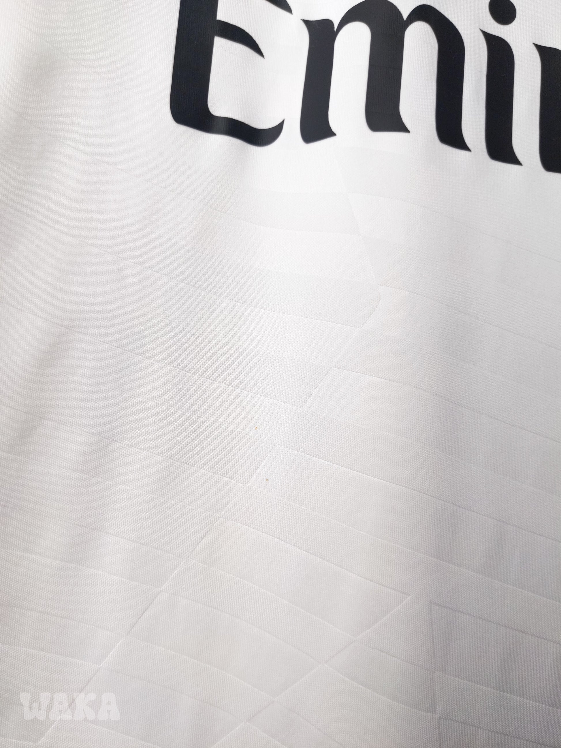 État : 8,5/10. Maillot en très bon état. L'inscription "Real Madrid" au niveau de la nuque est effacée. Une ou deux infimes tâches. Le reste est excellent.